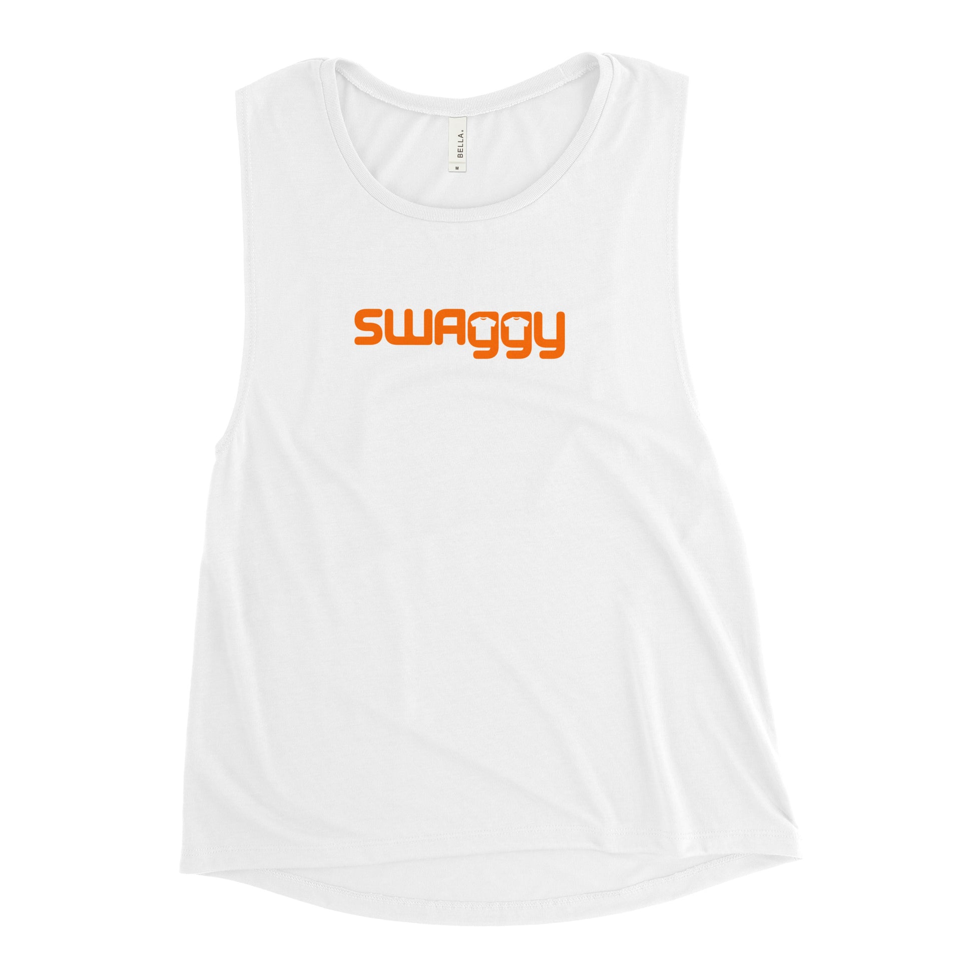This comfortable muscle tank is soft and flowy with low cut armholes for a relaxed look.
